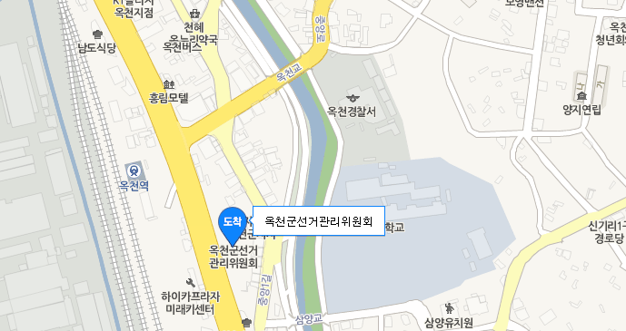 - 약 300m 전방 공영주차장을 지나서 우회전 후, 약 200m 직진 옥천군선거관리위원회