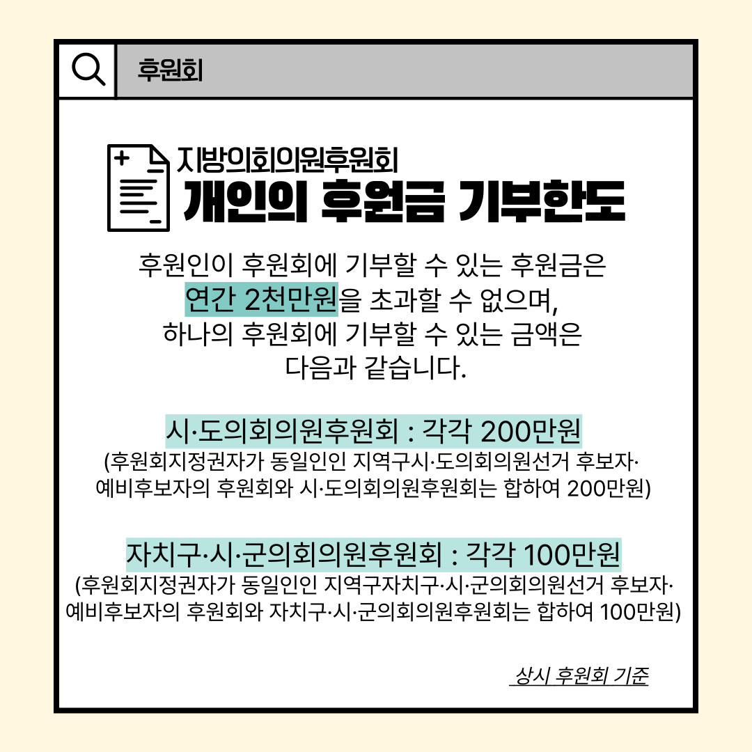 2. 자치구·시·군의회의원후원회 : 각각 100만원