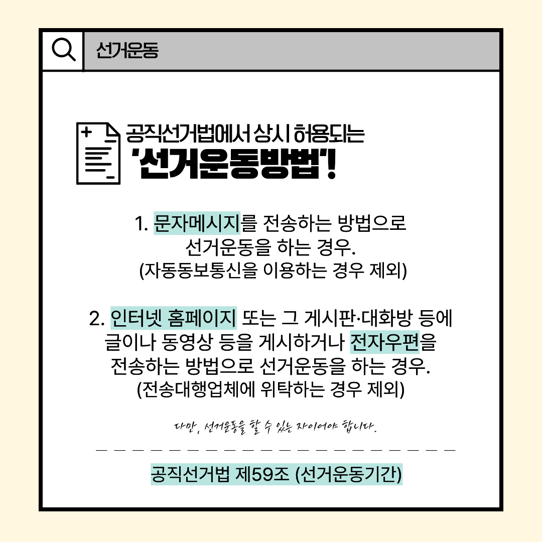공직선거법 제59조에 따라 문자메시지를